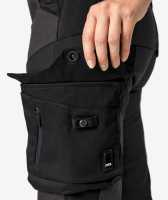 Schwarze Stretcheinsätze im Gesäss- und Beinbereich (Bi-Stretch = dehnfähig auf alle Seiten), funktionelle Metertasche mit freihängendem Boden