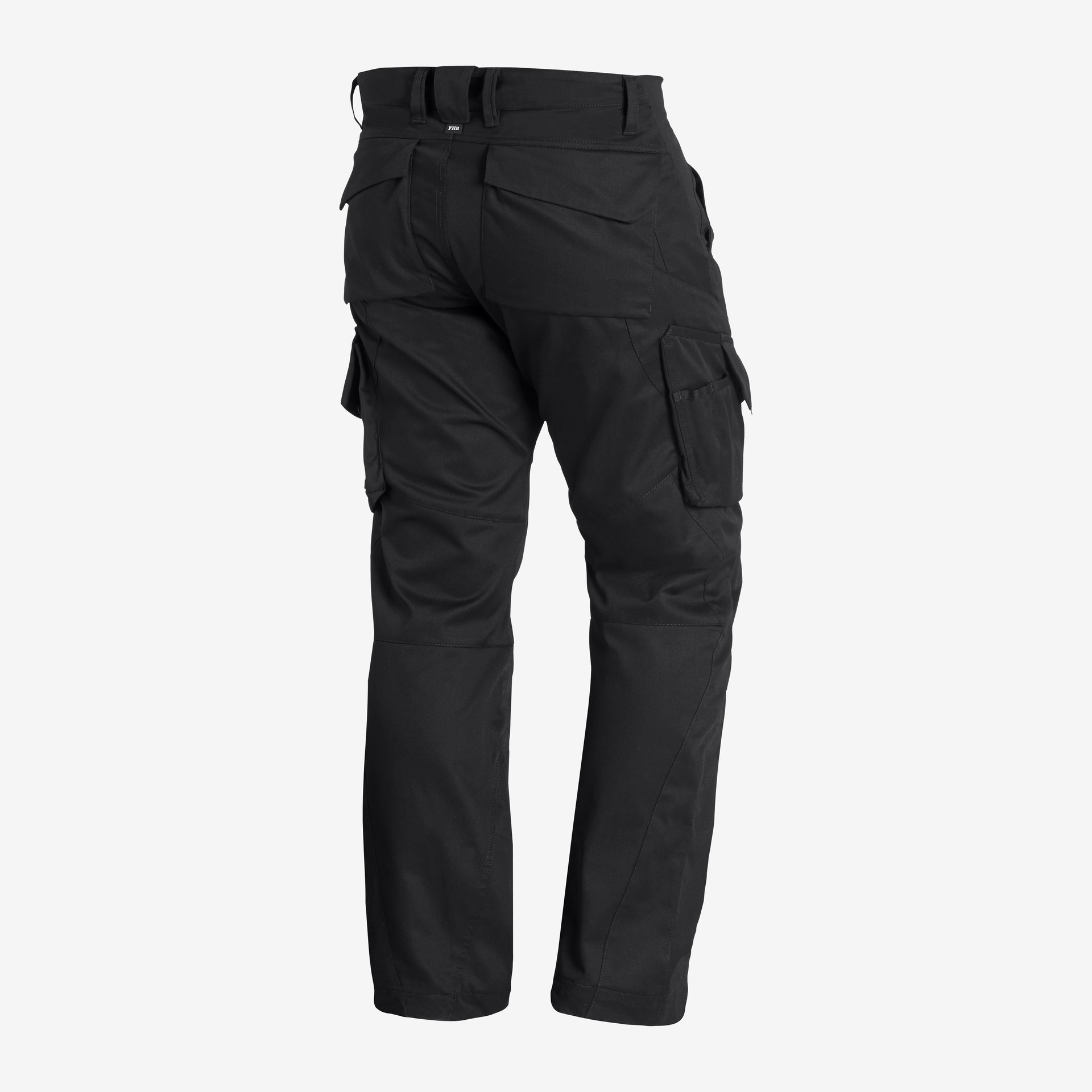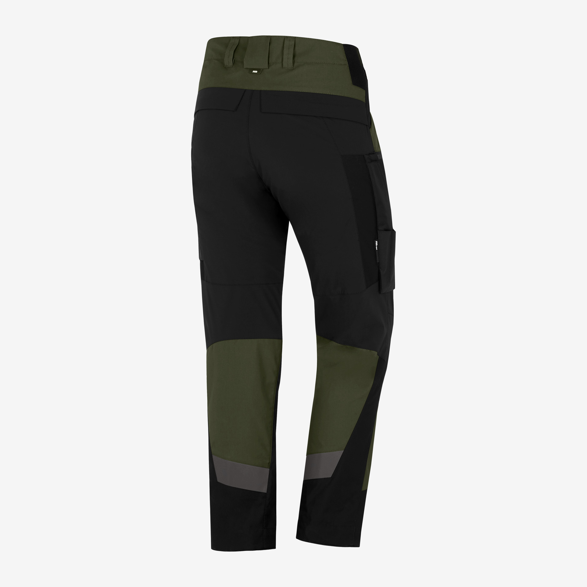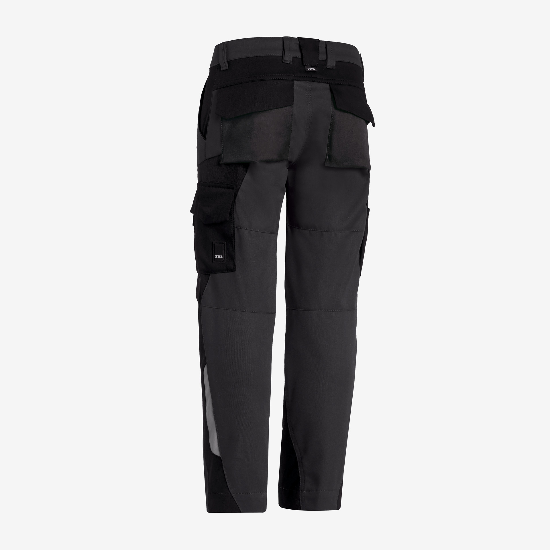 2 geräumige Gesässtaschen mit umgelegtem Taschenboden, innovative FHB-Pattentaschenverschlusslösung, retroreflektierende Markierung im hinteren Oberschenkelbereich