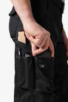 elastische Seitenkeile, jeweils 1 Handy- und 1 Zollstocktasche links und rechts, diverse Volumentaschen auf beiden Seiten der Hose, innovative FHB- Pattentaschenverschlusslösung