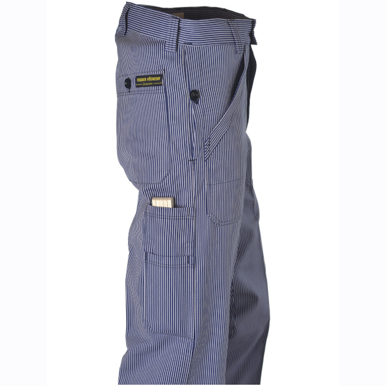 Arbeits-/Schreinerhose mit Knopfverschluss, blau-gestreift
