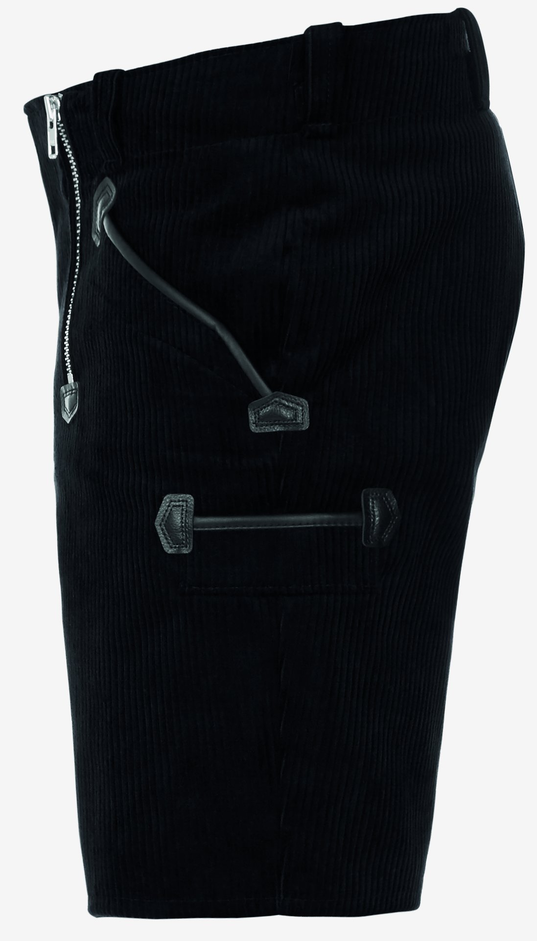 Zunftshorts Bernd Marke FHB aus breitgeripptem Trenkercord, schwarz, 2 gerade Metertaschen