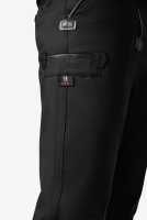 Kniepolstereinschub von oben (Cordura-Knie), Dehnbare Volumentasche mit herausnehmbarem Magnetknopf, Zwei Gesässpattentaschen (ohne Knopf), volle Beweglichkeit durch 4-Wege-Stretch