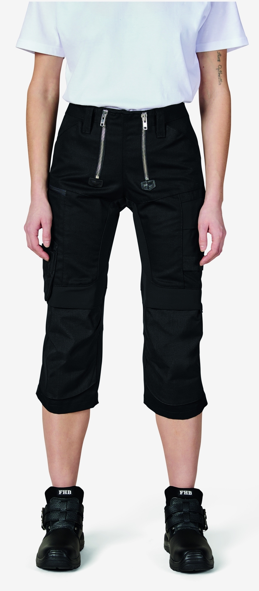 Stretch-Zunfthose Lou 3/4-lang Marke FHB, aus Polyester/Baumwolle, Gesäss- und Beintaschen ohne Knöpfe, schwarz