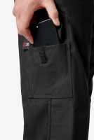 elastischer Oberstoff im Gesäss-, Schritt- und Kniebereich, körperbetont, Beintasche für Handy mit Reissverschluss, Stift-, Messer- und Zollstocktasche,